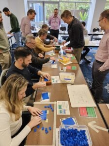 Between simulation rounds, participants review what disrupted flow, what created waste, and what simple changes could unblock the system. This is where the learning becomes powerful, because improvements aren’t “told” — they’re discovered.